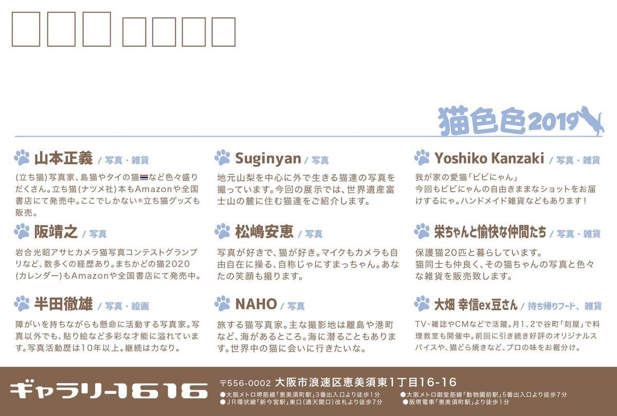 12月に開催される「立ち猫」山本さん主催の「猫色色 2019」に参加します。