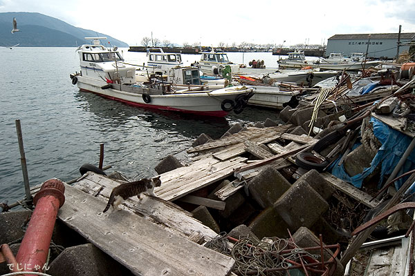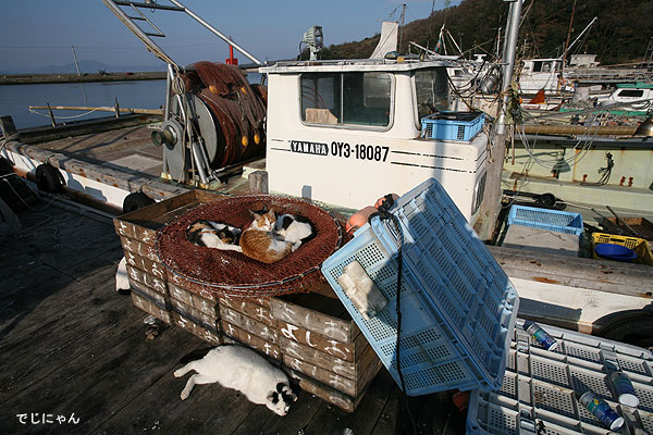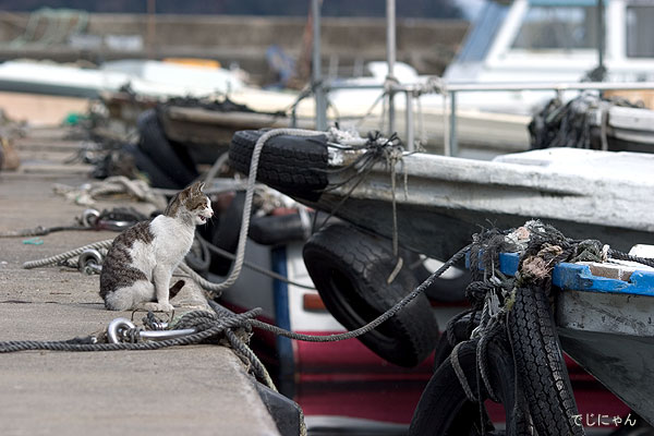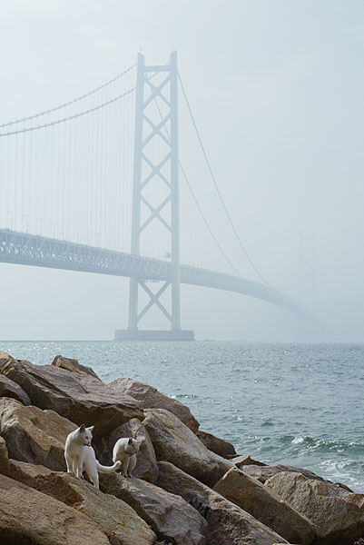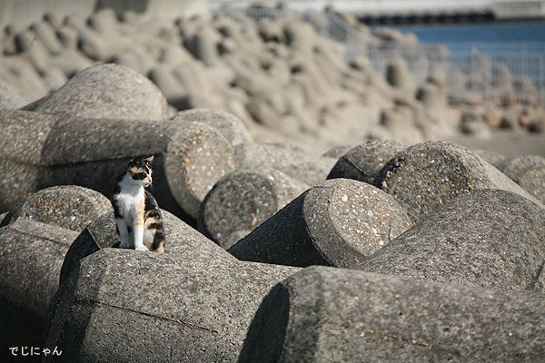 この海岸にはたくさんの猫たちが暮らしています。