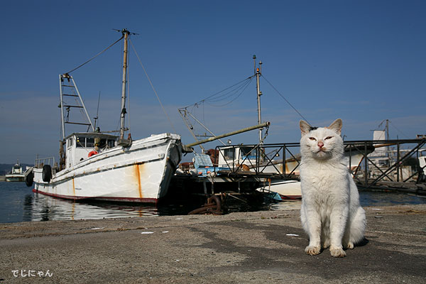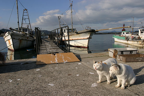 漁港で出会った白猫兄弟。