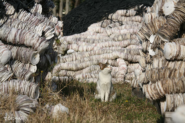 瀬戸内海のとある島で、このホタテ貝の殻は、牡蠣の養殖