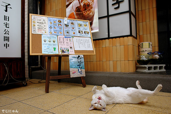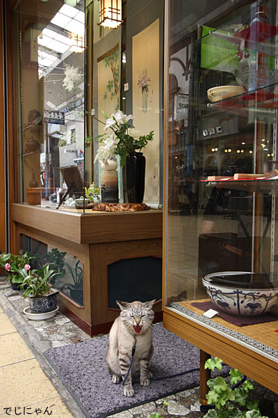 お茶屋さんの看板猫、この子のおかげでネズミがいなくなったらしい。