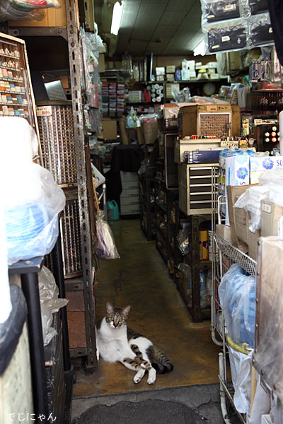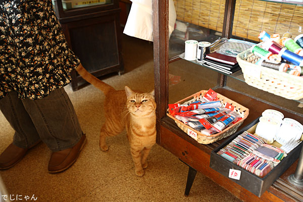同じく、この子も文房具屋さんの看板猫、茶トラ君は人見知りする