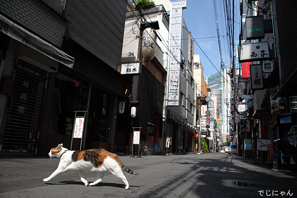 タバコ屋さんから元気に飛び出してきた三毛猫さん、この日は涼しく散歩日和でした。