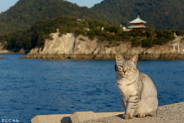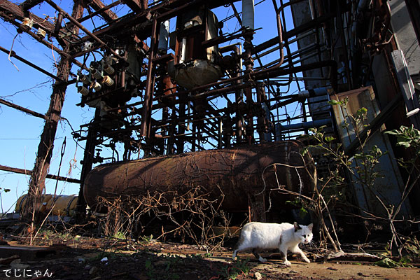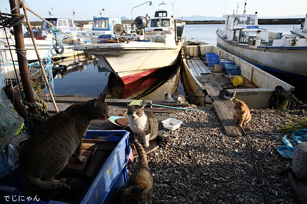 貝殻の奥では別の猫5匹がご飯を食べていた。