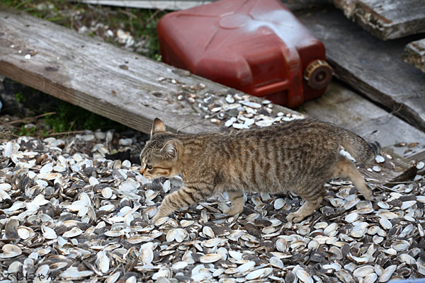 ここの漁港は主に貝を獲っているようで、あたり一面貝殻が落ちてました。