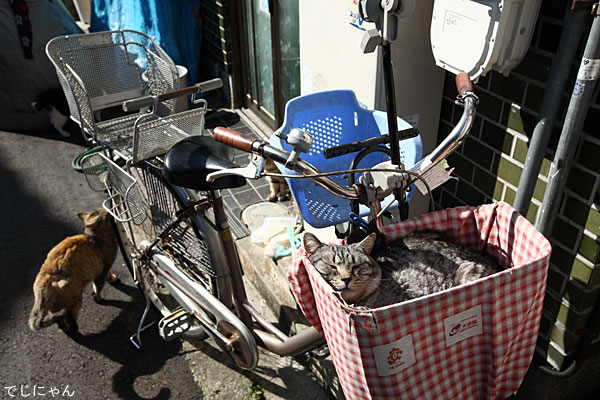 日当たり最高な自転車の前かごは、ボスの定位置。
