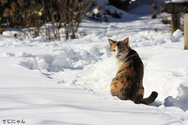 雪には所々に鴨の足跡が・・・どうやら鴨がカリカリを食べているみたいです。