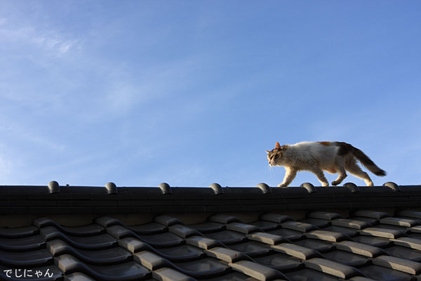 このあと、壁や看板を器用につたって屋根の頂上まで一気に駆け上がりました。