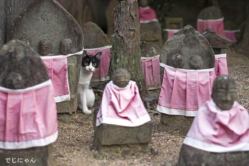 ここの猫たちは、お地蔵さんと地域の人たちに見守られながら生きています。