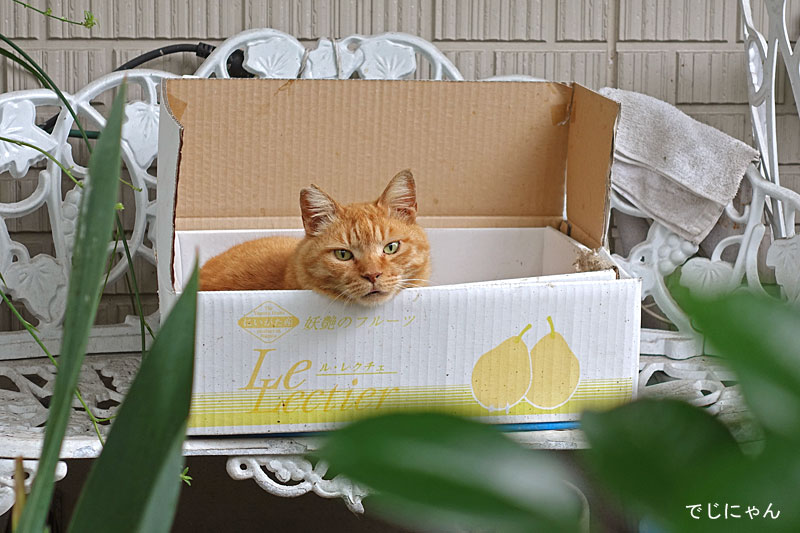 あらぁ、豪華なベンチに洋ナシの段ボールですか。