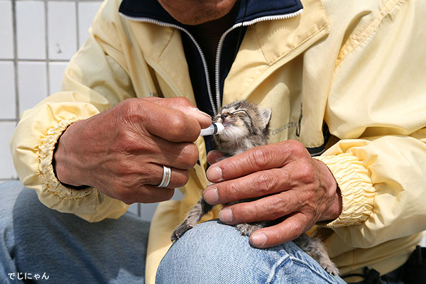 猫用ミルクを必死で飲んでました。