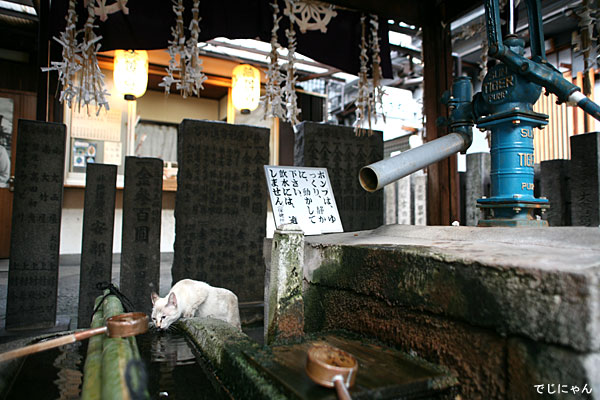 都会のど真ん中にある神社、朝はこうして猫を見かけるのですが、