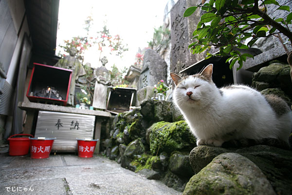 参道で猫を探す・・・猫が好みそうな小さな横道で猫を発見。