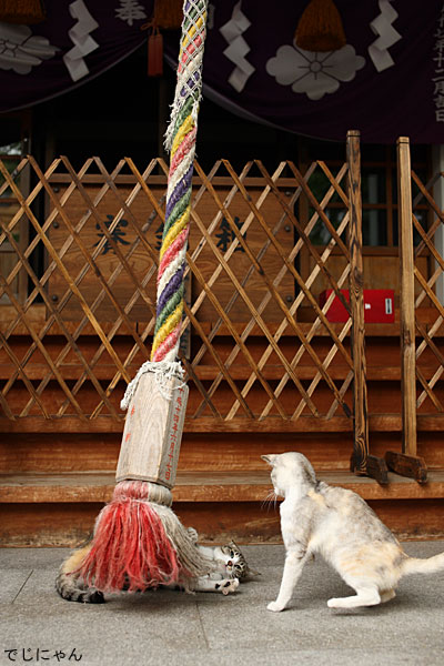 この神社にはたくさんの猫がいて、写真に写ってない猫たちは、皆逃げ猫でした。