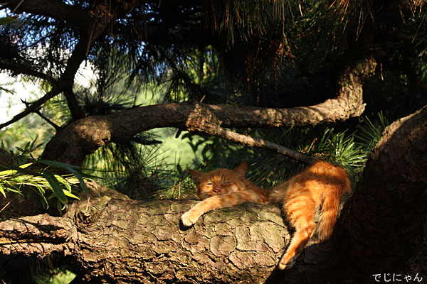 松ノ木と茶トラ猫、アジアっぽくていい!