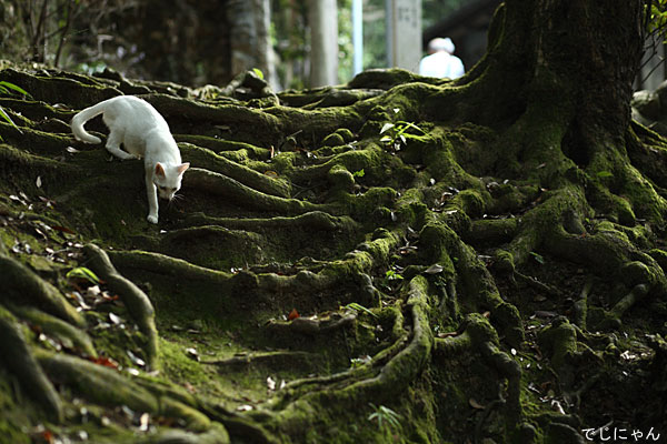 猫は器用ですね、根っこの階段をすいすいと降りてました。