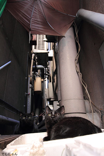 ここでは黒猫一族が住んでいます、5匹全て黒!