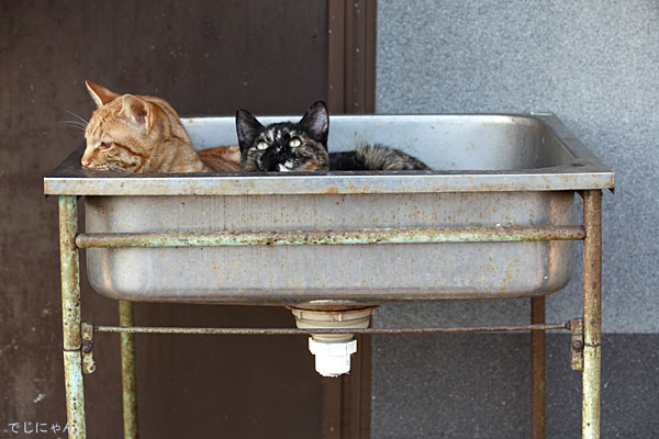 こんにちは、栓をしたらお風呂になりますね、猫たちは流しの中でじゃれあってました。