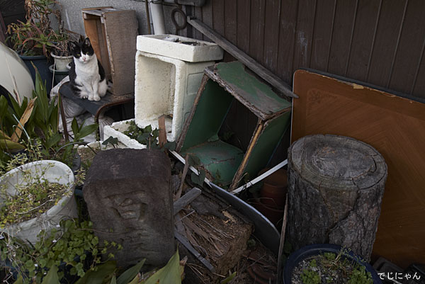 小さな路地には放置自転車と放置看板と猫がいました。