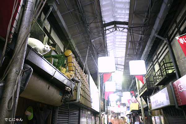 こういう、ちょっと古い雰囲気の商店街にも、上を見上げれば